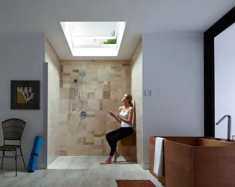 Skylights are windows on a roof that allow ambient light to flow into a living space. They give homeowners the opportunity to engage with nature by seeing the moon, stars, trees, and sky. Light from these units can be controlled with VELUX solar-powered roomdarkening solar-powered blinds. Moreover, VELUX also offers these units the ability to open and allow fresh air to penetrate living space!