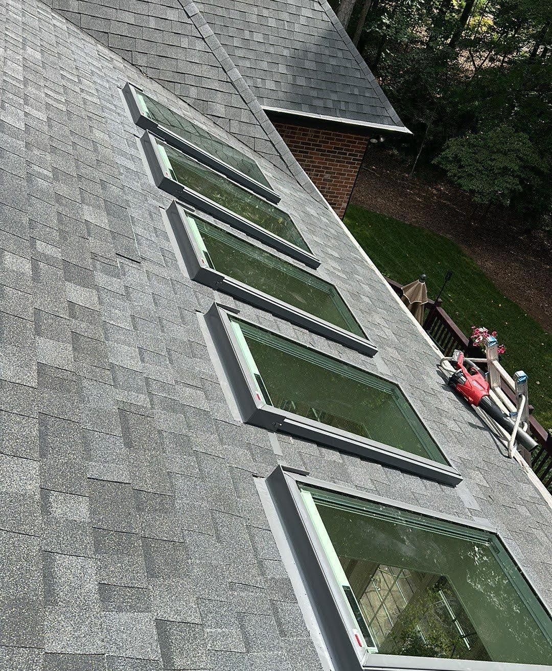 Just like tires on a car, skylights have a lifespan and unit replacement is inevitable. As the largest skylight manufacturer in the world, VELUX is committed to making the best units in the world! In 2010, VELUX rolled-out major changes to their standard skylights including improved weeping systems, enclosed fasteners (no screws in cladding) standard white frames for Deck units, laminated loe3 gray/green tinted glass, hail glass replacement warranties, and about 1/8 of an inch difference in the new/old frames. While these changes are great, it is not possible to replace the tops of the skylights because the bottom parts of the frame are different. Instead, skylight replacement projects include new skylights and corresponding flashings. The following repeat customers needed new units and wanted solar-powered blinds for controlling heat gain/loss.